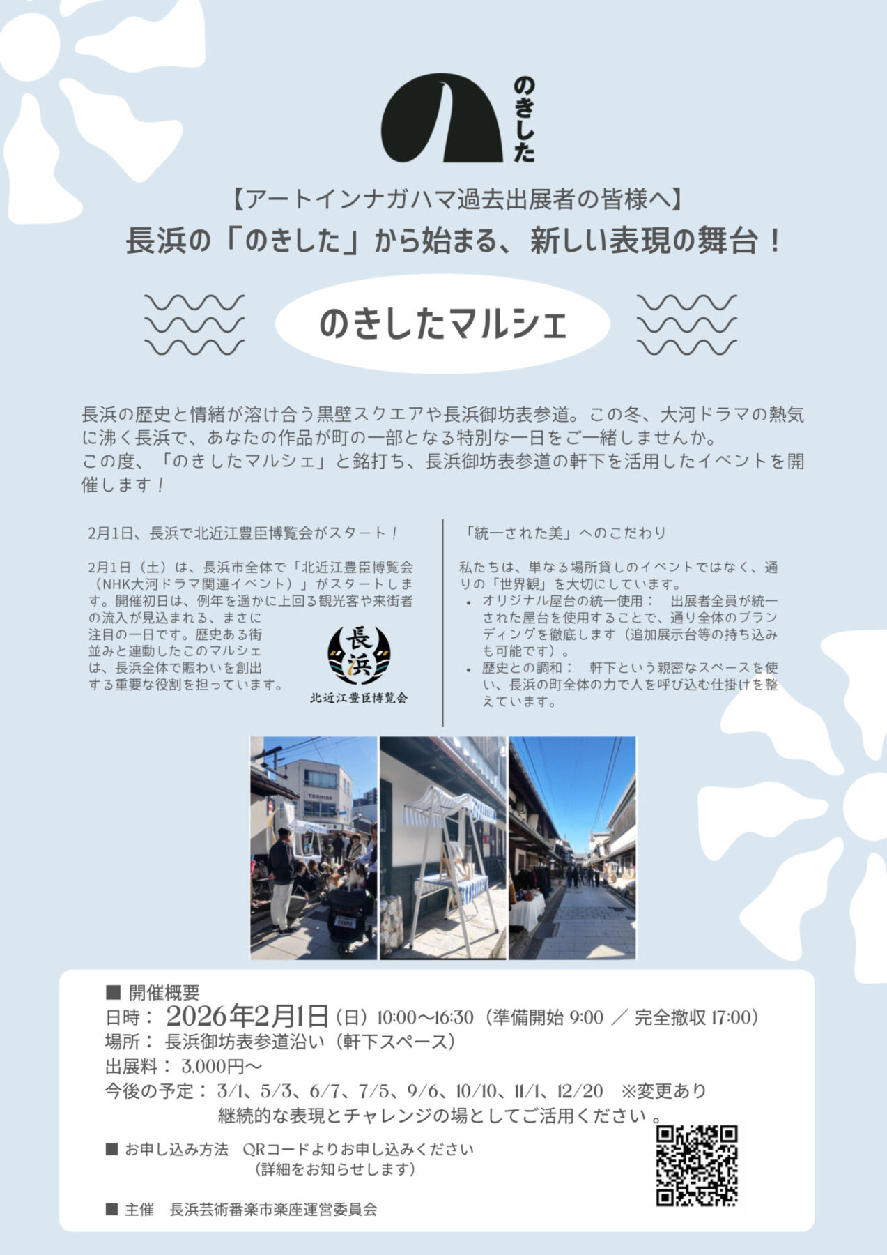 長浜の「のきした」から始まる、新しい表現の舞台!「のきしたマルシェ」の出展者様の募集を開始いたしました。